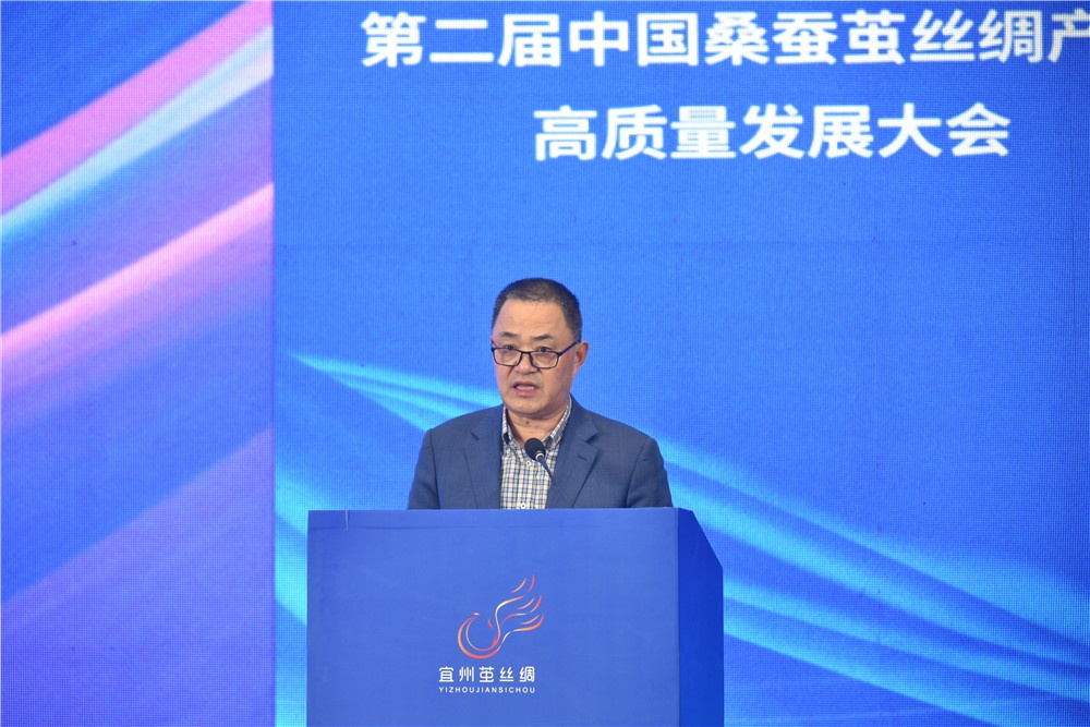 11月25日 ,,,,,以“河池桑蚕茧 ,,,,,天下新思绪”为主题的2022中国丝绸大会暨第二届中国桑蚕茧丝绸工业高质量生长大会在广西宜州开幕。。河池市委书记秦春成、中国丝绸协会会长唐琳出席并致开幕辞 ,,,,,市长王军作《河池市桑蚕茧丝绸全工业生长报告》。。中国丝绸协会副会长、集团董事长周国建受邀作《坚韧不拔强主业、脚扎实地营生长》主题演讲 ,,,,,并为“天下茧丝绸行业终身成绩奖”获得者们颁奖。。