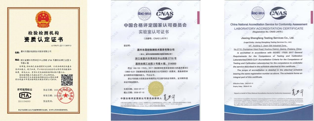 集团旗下第三方检测机构——晟纺检测于今年5月尾接受了中国及格评定委员会(CNAS)关于实验室能力的资质认定有用期6年的换证复评审事情。。经由评审以及整改,,,,,于7月中旬顺遂通过评审取得CNAS证书。。拥有CNAS的数据获得国际间认可(ILAC),,,,,报告被许多海内外客户认可。。